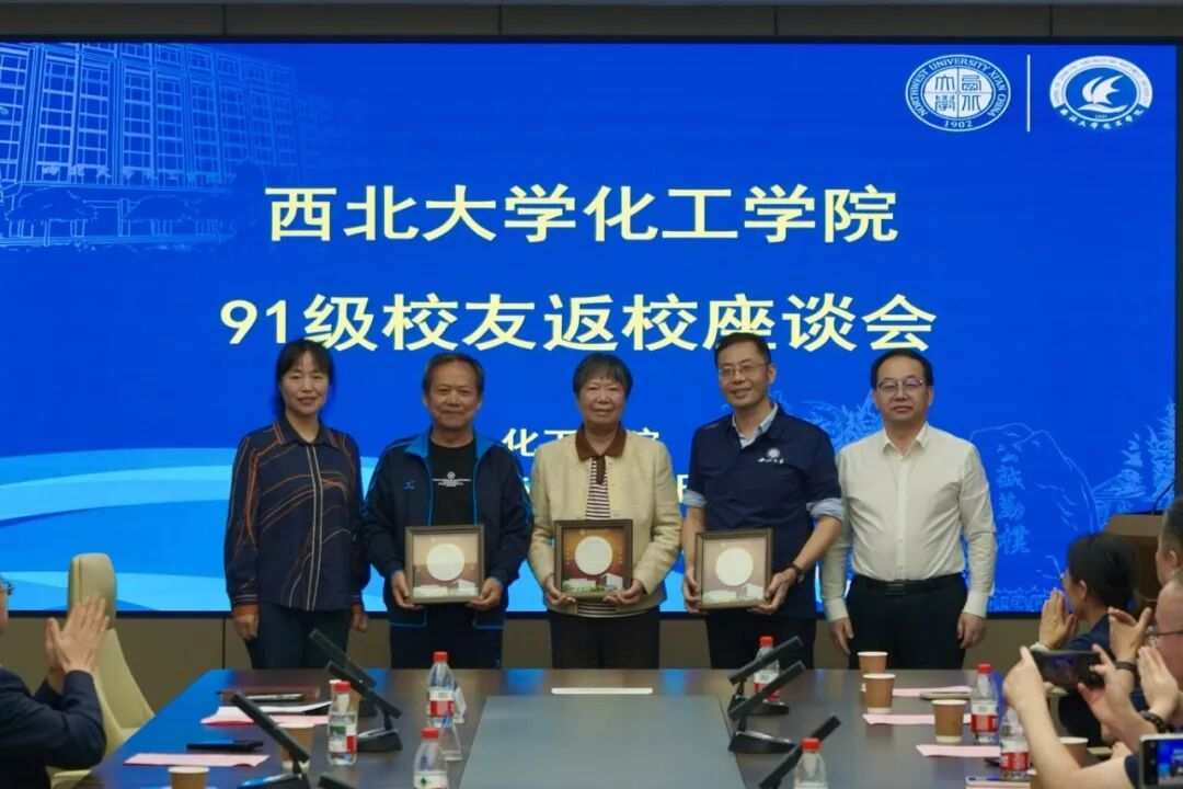 活动中,校友们重走太白校区,重温当年学习生活的难忘场景;走进学校博物馆,探寻母校历史文脉;参观长安校区学院新大楼,感受学院发展新貌。随后,校友座谈会在学院校友捐建的若舟会议室召开,校党委常委、统战部部长董国强出席会议,院党政班子成员、校友办负责人,时任学院党总支副书记令狐培选,时任班主任王立丰,时任专业课教师高新,1991级无机化工专业校友齐聚一堂,会议由学院行政副院长王小强主持。