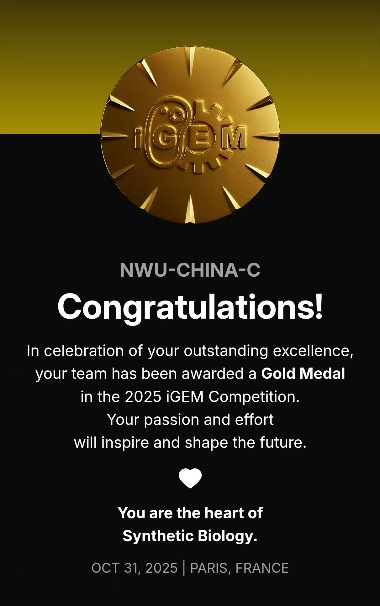这是西北大学代表队第四次在iGEM中斩获金奖,也是化工学院首次获得该项殊荣,充分彰显了学校在合成生物学领域的科研实力与创新活力。