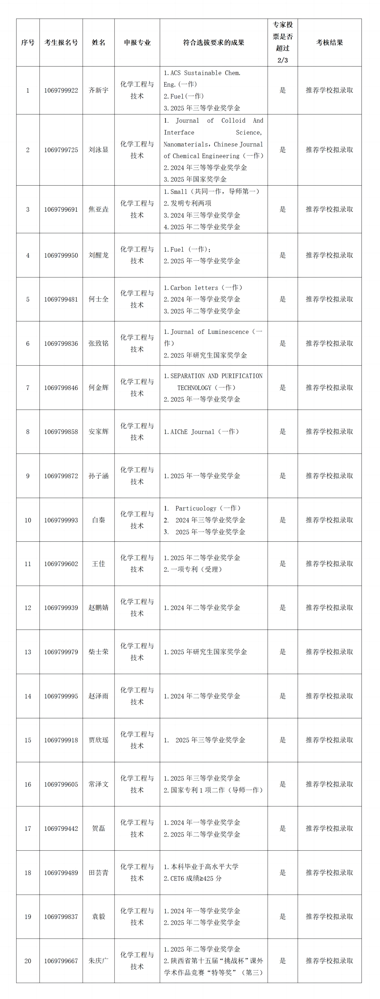 2026年化工学院“硕博连读”研究生选拨推荐结果公示 按照《西北大学关于做好2026年“硕博连读”研究生选拔工作的通知》相关规定,经学院资格审查、考核小组综合考核并投票表决,齐新宇等20人获得2/3专家投票推荐。现对我院2026年本次硕博连读研究生综合考核推荐结果公示如下: 公示时间为2026年3月17日至3月19日。 有异议者,请在3月19日17点前向学院研究生教学办公室反映,反映材料需实名提交,以便学院核实并反馈。 联系电话:029-88303733 联系邮箱:pmc418035336@163.com 西北大学化工学院 2026年3月17日
