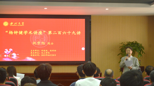 4月28日下午,加拿大皇家科学院、加拿大工程院、加拿大工程研究总院三院院士祝京旭做客西北大学“杨钟健学术讲座”,为师生作了题为“科学研究的初衷与学术生涯的发展”的专题报告。我院马晓迅教授主持报告会,西北大学副校长、化工学院院长范代娣教授致辞并向祝京旭院士赠送“杨钟健学术讲座”纪念牌。学校相关部门负责人及师生代表参加了报告会。