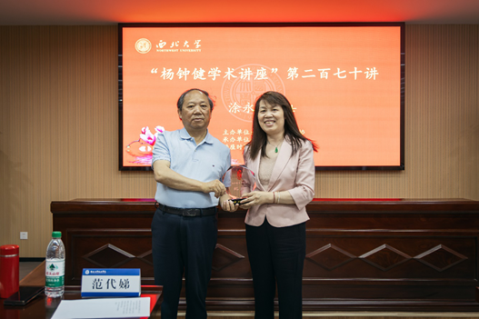 5月8日上午,中国科学院院士、著名有机化学科学家涂永强教授受邀出席西北大学“杨钟健学术讲座”,为师生带来题为“基于C-C键重排的多环萜类天然产物合成”的专题报告。科技处负责人杨涛致辞,西北大学副校长范代娣向涂永强院士赠送了“杨钟健学术讲座”纪念牌,我院郭媛教授主持了学术报告会。学校相关部门负责人及我院师生代表参加了报告会。