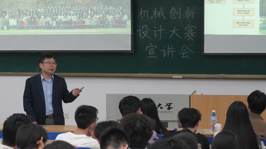 5月12日晚,全国大学生机械创新设计大赛宣讲会在长安校区1J301教室召开。副院长刘恩周,学院教师杨阳、赵天宇,辅导员王君睿、李子明,2023级全体本科生和部分学生代表参加了本次宣讲会,会议由李子明主持。
