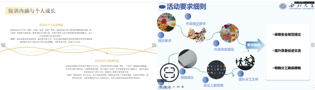 本次比赛共24组参赛选手,初赛筛选晋级出12组选手,各组选手通过抽签决定答辩顺序,依次进行PPT讲解,展示他们精心筹备的策划方案。从创新的活动策划,到别具一格的活动特色,每一份方案都凝聚着团队的智慧与汗水。选手们从策划目的、策划内容、活动特色等多个维度进行了详细讲解,充分展现了各自独特的视角和深入的思考。