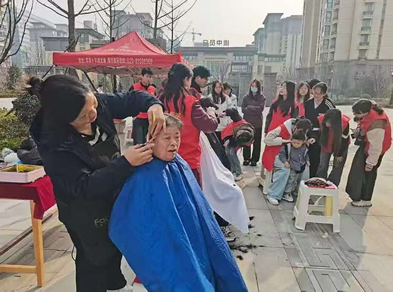 活动开展前,先通过一段短片简洁地介绍了“二月二龙抬头”的起源以及敬老文化,以此提升团员们对传统文化的认同感。接着,播放雷锋事迹纪录片的精彩片段,引导团员们深入思考“怎样将传统美德与雷锋精神相融合”。与此同时,团支书郭佳栋认真宣读注意事项,着重强调要对工具进行严格消毒;邀请专业理发师来到现场进行指导,全方位保障老人的安全。