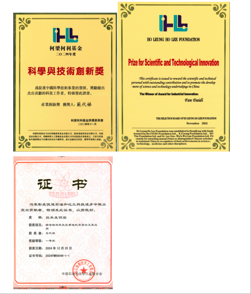 范代娣教授及团队荣获何梁何利基金科学与技术创新奖,中国石油和化学工业联合会技术发明一等奖,并被授予中国药学发展奖特别贡献奖。