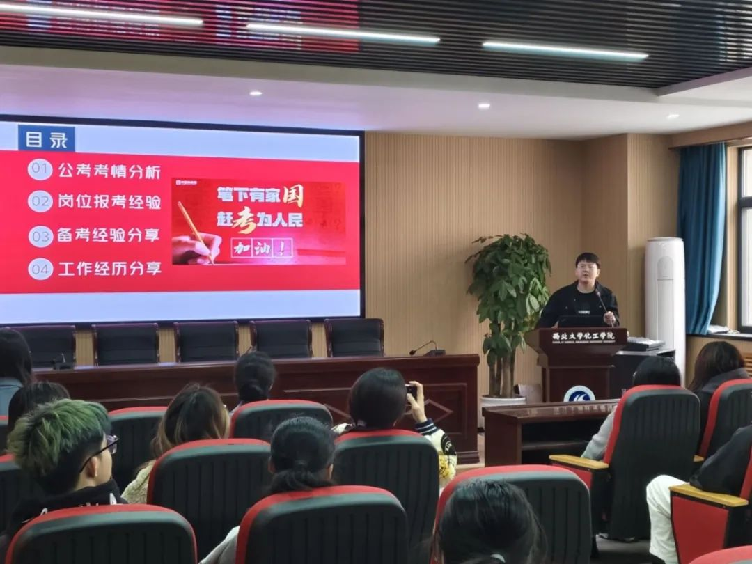 在成长事迹分享环节,蒋超凡学长从自己决定考公的初衷出发,详细讲述了备考过程中的点点滴滴。他分享了如何制定合理的学习计划,如何平衡学习与生活,如何应对备考过程中的压力与挫折。他强调了积累知识、提升能力的重要性,同时也提醒同学们要关注时事热点,拓宽知识面。同时,蒋超凡学长分享了自己在考公过程中的心态调整,鼓励大家保持积极乐观的心态,坚持不懈地努力。蒋超凡学长还分享了自己在考公过程中的心路历程,以及对未来工作的展望。他表示,虽然备考过程充满挑战,但正是这些经历让他更加坚定了自己的目标。