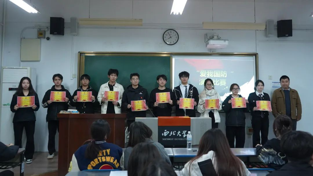 评委们从演讲内容、语言表达、情感投入、舞台表现等多个方面对选手进行了综合考量。他们认真聆听每一位选手的演讲,秉持公平、公正、公开的原则,为选手们打出了客观的分数。经过激烈的角逐,比赛结果终于揭晓。最后,由团委学生组织指导老师程路路老师为获奖同学颁奖并提出寄语,希望大家继续关注国防,也期待同学们可以发挥特长,用实际行动爱我国防。