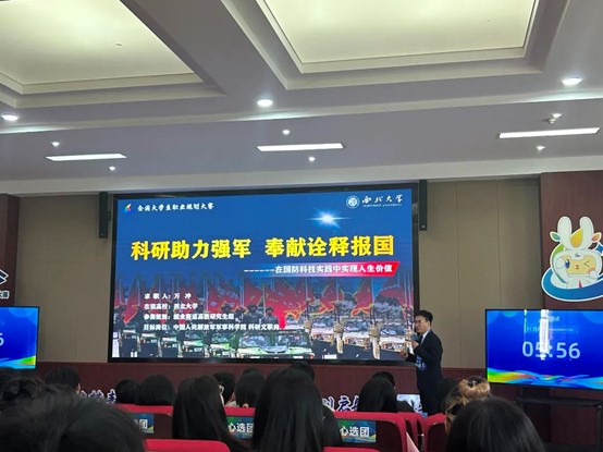 总决赛现场,万冲以“科研助力强军,奉献诠释报国”为主题展开陈述,致力于在国防科技实践中实现人生价值。