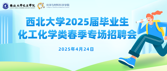 为搭建优质用人单位与毕业生精准对接平台,全力促进2025届毕业生高质量充分就业,由西北大学学生就业创业指导服务中心主办,化工学院、化学与材料科学学院承办的西北大学2025届毕业生化工、化学类春季专场招聘会将于2025年4月24日(星期四)14:00-17:00在西北大学长安校区化工学院举行,诚邀各用人单位莅临参会,广纳贤才。