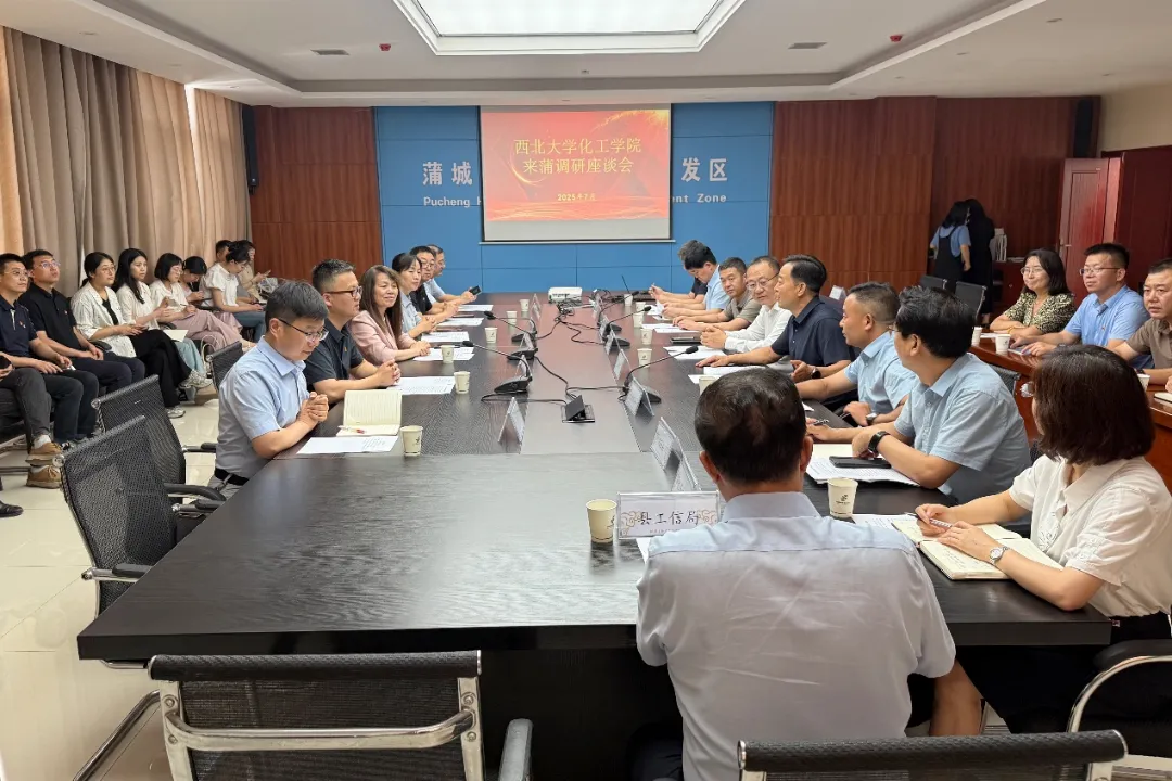 范代娣副校长介绍了我校的百年发展历程和化工学院的特色优势,期待借助本次活动形成我校与蒲城高新区面向未来发展的全新起点,全方面深化“政产学研”合作,强化学科产业对接,促进高校科研成果与地方经济深度融合,为蒲城经济高质量发展提供智力支撑。蒲城县委副书记、县长薛斌在致辞中欢迎西大化工学院的师生到来,他详细介绍了蒲城的经济产业、历史人文等方面的特色,也表示将以此次活动为契机,持续加强与西北大学化工学院在人才培养、科学研究等方面的交流合作,吸引更多西北大学的优质人才来蒲城干事创业。参会人员还就有关合作意向开展了深入的交流研讨。